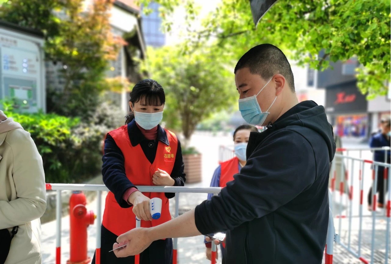陈列馆每天上、下午共发放门票900张,合理控制馆内流量,实现限量开放。5月1日、2日,故居门票提前发放完毕,及时公布馆内流量信息并提早闭馆,为游客出行提供参考。在领票处,工作人员对入馆游客进行体温测量,随后实名登记、戴口罩、核验“安康码”等措施一个都不少。为防止人员聚集,陈列馆实行检查点前置,在领票亭前设置问询处,安排物业人员、讲解员帮助游客注册、核验“安康码”。