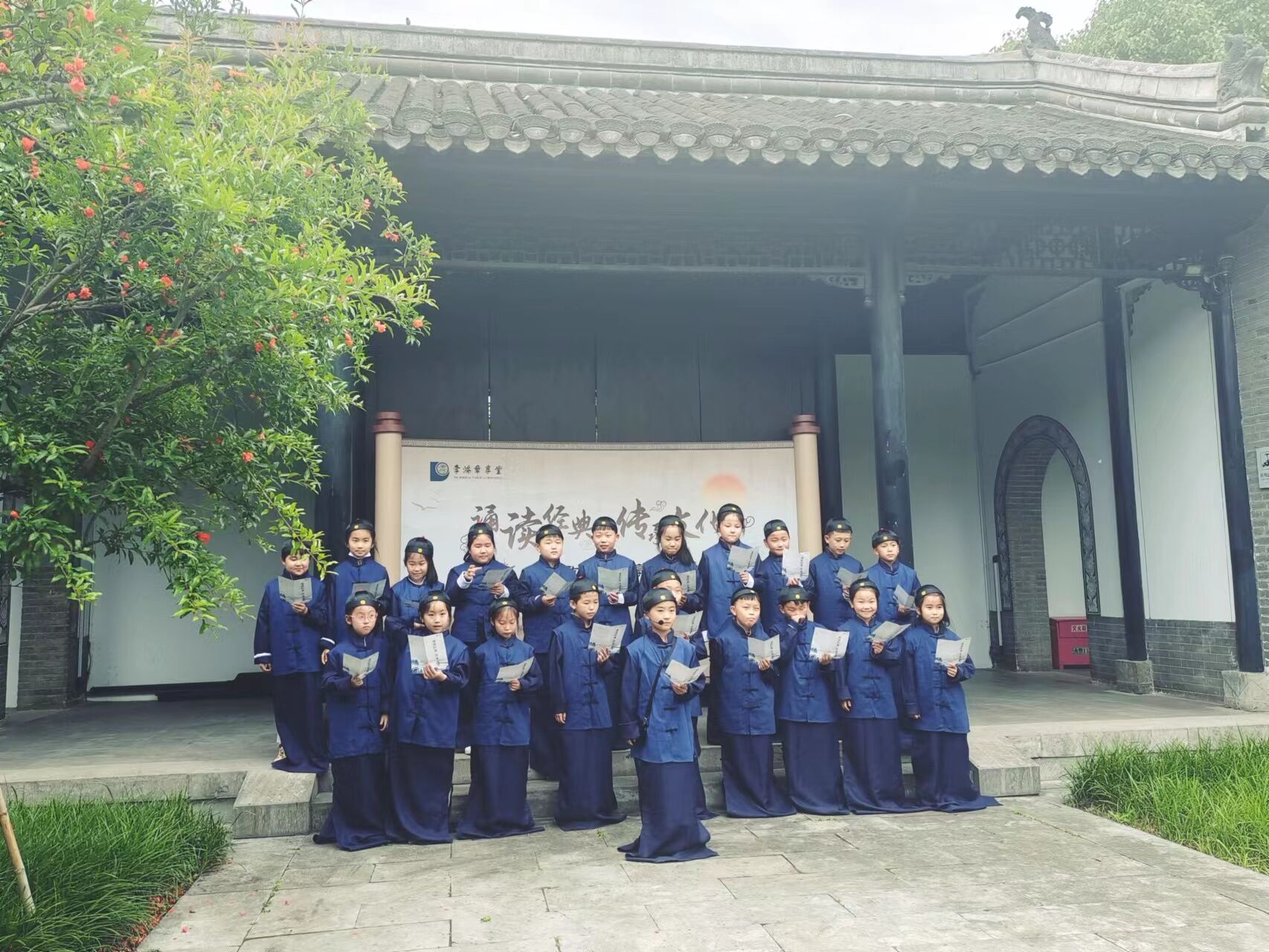李鸿章出身科第,文学素养颇高,所创作的诗歌蕴含独特的风格和内涵。“李鸿章的诗情人生”展览,按照他的人生经历和政治地位的变迁,选取了登科以前、戎马之中、封疆以后三个阶段的诗歌代表作。这些诗歌雄健豪放,独抒性灵, 有对科第功名的热切追求,也见戎马生涯中愈挫愈勇之精神,更显封疆后的踌躇满志。5月19日上午9时许,在社教专员的带领下,诵读活动的参与者在观看享堂的宣传片和实地参观后,穿上传统服饰,吟诵诸葛亮的《诫子书》、李鸿章的经典名篇《二十自述》。诵读经典,让优秀传统文化根植于学生幼小心灵,提升人生素养。