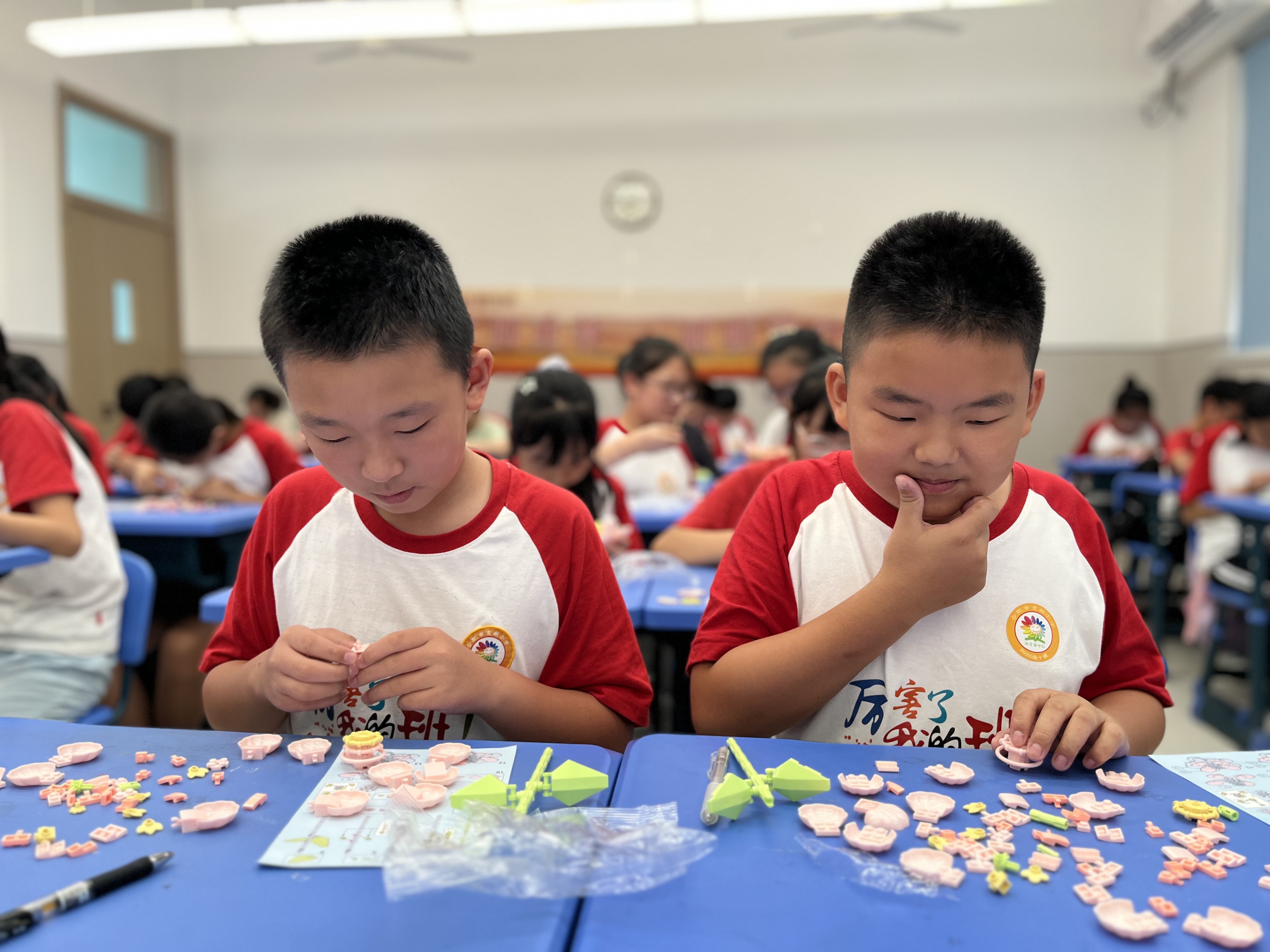 活动中,我馆社教老师结合PPT,从汉晋时期孔子诞辰祭典的教师节雏形,到1985年我国正式确立9月10日为教师节,清晰梳理了教师节的历史脉络。同时,重点讲述李鸿章受曾国藩教导改正缺点、坚守“诚”字的尊师故事,以及“程门立雪”等典故,让同学们深刻领悟“尊师重教”的内涵。手工制作环节中同学们热情高涨,在老师的指导下专注地拼装芙蓉花积木。大家仔细拼接每一块零件,将对老师的敬爱与感恩,融入到这一朵朵精致的芙蓉花中。随后,同学们满怀敬意地将亲手做的礼物送到老师手中,表达祝福与感激之情。