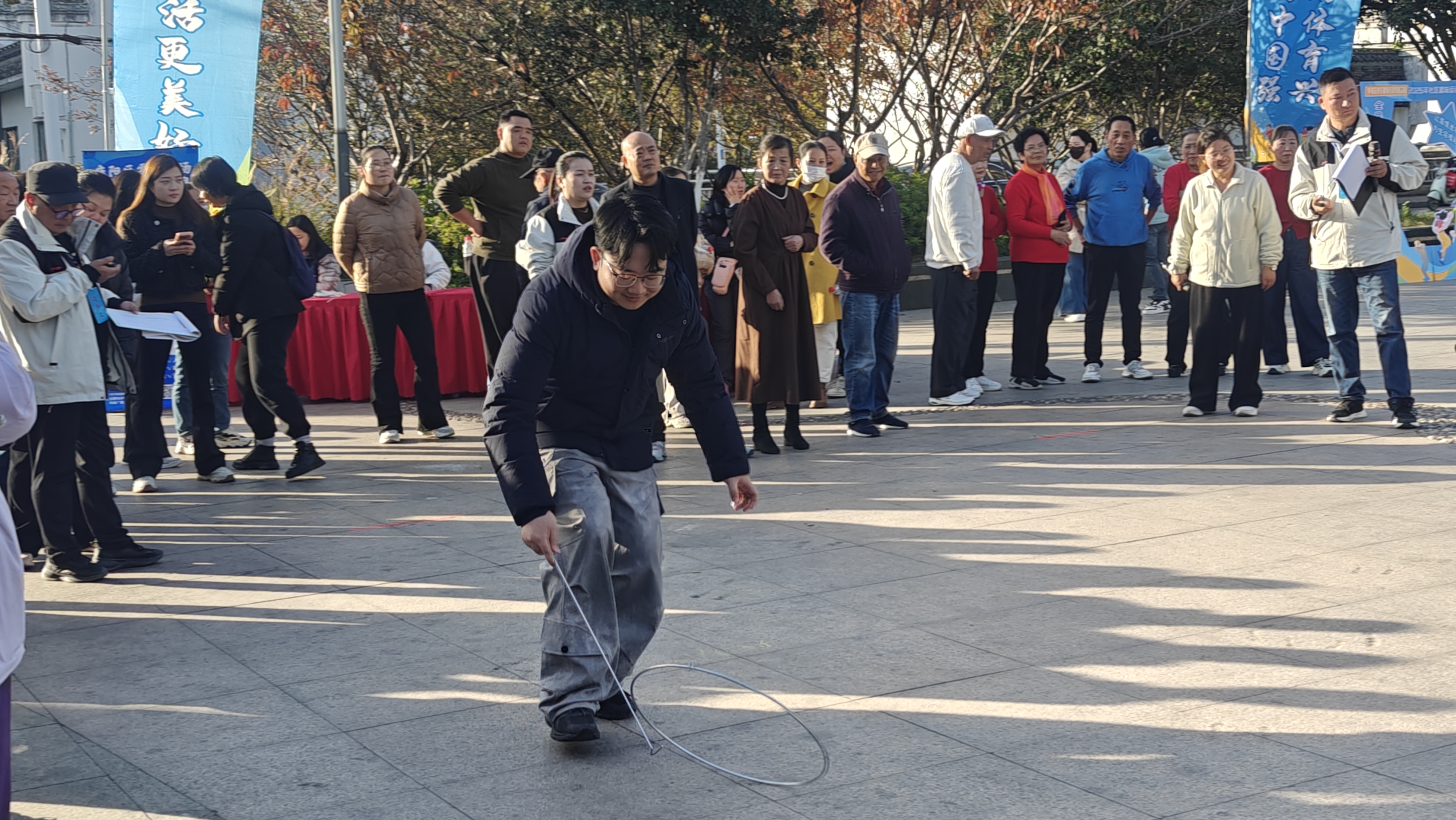 作为庐阳区“快乐健身行动”专场活动的一部分,这场运动会充满欢乐与活力。赛场上,我馆员工分工协作、默契十足:“摸石头过河”环节,步伐稳健、节奏精准;“乒乓球托球跑”时,屏气凝神、稳步前行;“两人三足”项目中,口号一致、配合无间;“趣味滚铁环”赛场,手握推杆、稳控铁环。每一次冲刺、每一次协作都赢得现场阵阵喝彩。在欢声笑语中释放压力,在团队协作里凝聚力量,既体验了运动的快乐,也增进了与社区居民的交流。