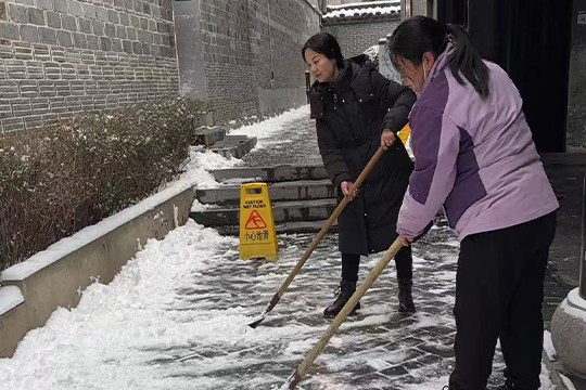 很快,馆内外主要通道恢复整洁,工作人员还在关键点位摆放了防滑标识。下一步,我们将持续关注天气变化,加强值班巡查,保持应急响应状态,以“时时放心不下”的责任感,为游客筑牢安全防线,确保陈列馆运行安全平稳。