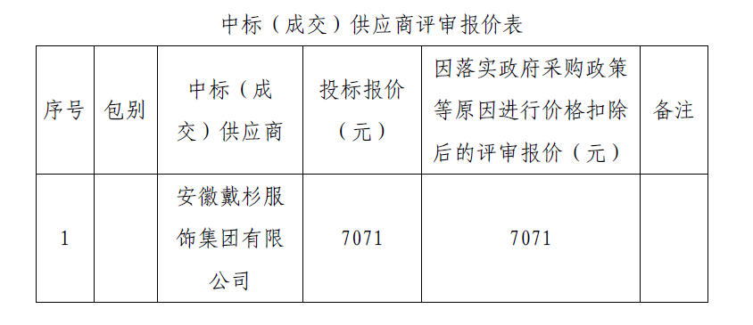 我馆关于李鸿章故居陈列馆秋冬制服定制项目已于2025年11月27日以密封询价的方式,按照符合项目采购需求有效最低价原则评议,现将询价评议结果公示如下: