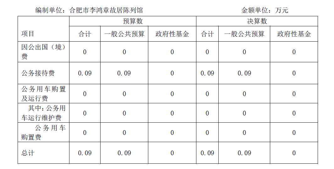 合肥市李鸿章故居陈列馆2022年度一般公共预算及政府性基金财政拨款“三公”经费支出决算情况说明
