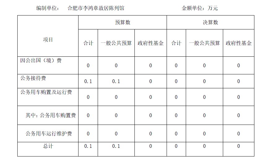公务用车运行维护费预算为0万元,支出决算为0万元,完成预算的100%;与上年持平。决算数与预算数、上年数持平的主要原因是本年度和上年度既无一般公共预算及政府性基金财政拨款安排的公务用车运行维护费预算计划,亦无发生实际支出。公务用车运行维护费,包括车辆燃料费、维修费、过路过桥费、保险费等支出,主要用于单位公务用车保留车辆的运行维护支出。截至2024年12月31日,合肥市李鸿章故居陈列馆一般公共预算及政府性基金财政拨款开支的公务用车保有数为0辆。