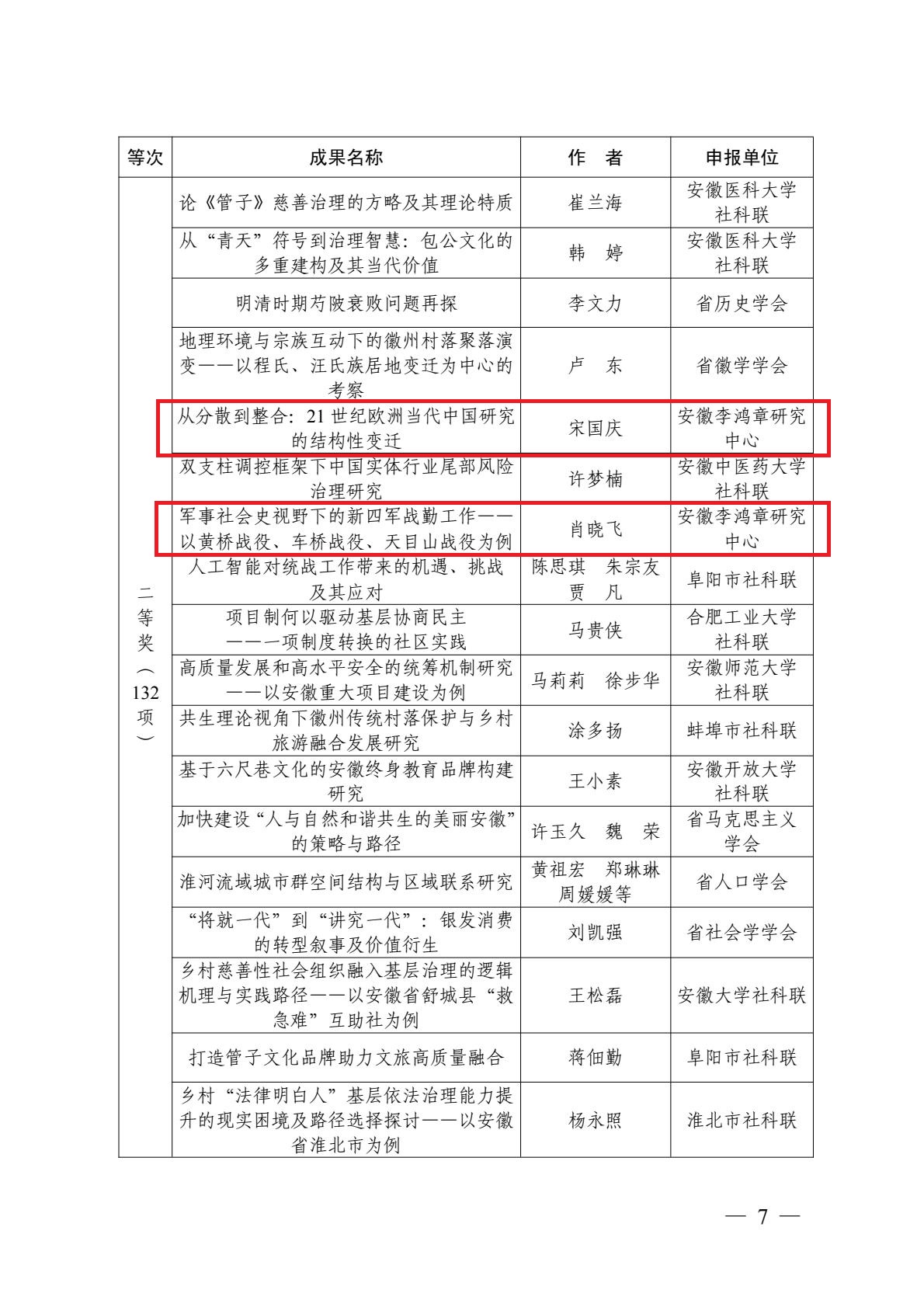 近日,安徽省社科联2025年度省“三项课题”研究活动优秀成果与先进单位名单正式公布。李鸿章研究中心凭借出色的科研组织工作与高质量的成果申报,荣获“先进单位”称号。